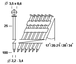 Реечные гвозди PE-Strip с углом наклона 21° в пластиковой обойме.